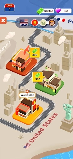 随着关卡的推进,玩家可以解锁多个城市的不同店面,每家店都有不同的布局和更高的挑战难度。
