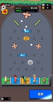 小球弹出,从上下落,经过各种障碍,触发数字门,技能球,英雄球