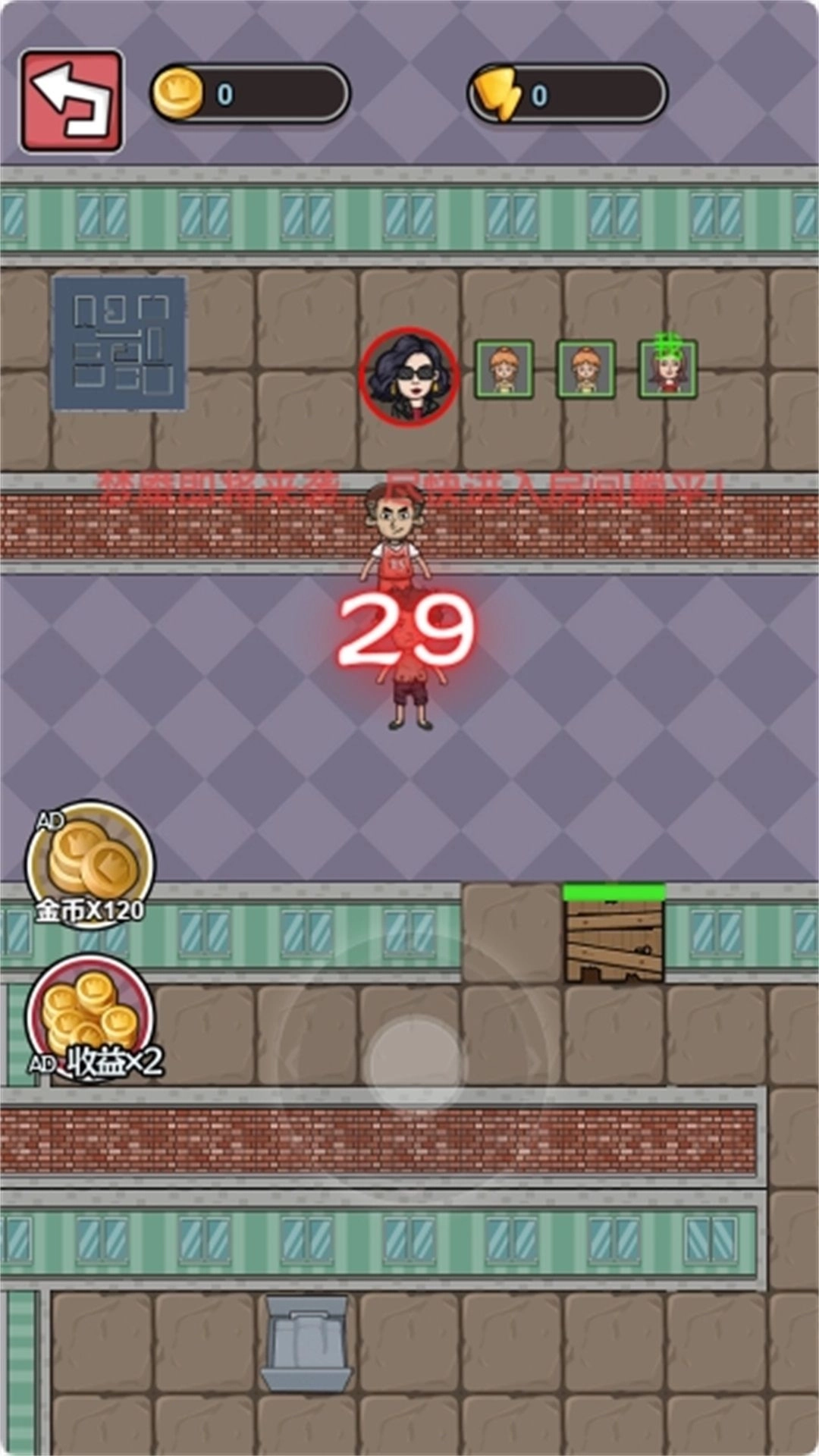 校园躺平派对游戏,一款十分烧脑的冒险解谜游戏,每一道游戏关卡中都是有着不同的剧情任务需要大家自己前来进行挑战,每一间的教室中都有着不同的恐怖猛鬼会对玩家们进行攻击,需要不断的使用相当灵活的技巧就能够将这些猛鬼全部都抓捕进行消灭。