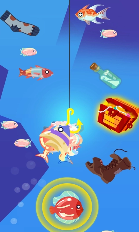 2、鱼钩会不断地下潜,玩家需要努力钓上更多的鱼儿。