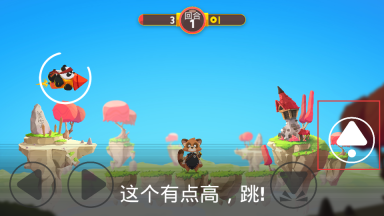 1、使用左右方向键操控角色移动,点击跳跃键来越过障碍,每个关卡都要在限定的回合数内到达终点,完成解救宝宝的任务。