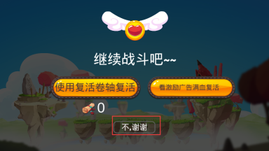 2、在冒险途中收集钻石道具,这些钻石可以用来解锁新的角色皮肤,也能购买复活卷轴;要是在战斗中被敌人攻击导致挑战失败,就能通过解锁皮肤或使用复活卷轴的方式复活,继续进行挑战。