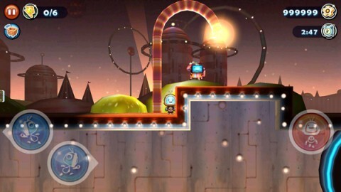 3、游戏通过屏幕上的虚拟按键来操控,玩家可以借此完成前进、后退、跳跃、抓取等一系列动作。要记得在游戏中寻找能量与齿轮,唯有如此才能获取更高分数,进而顺利通过关卡。