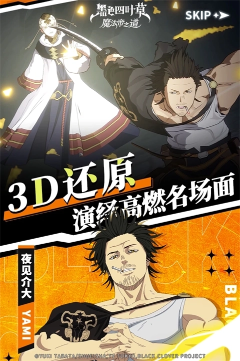 100%复刻动漫角色、场景与剧情,经典名场面(如白夜魔眼对战、魔法帝选拔)高清重制,原班声优配音,带来沉浸式动漫体验。