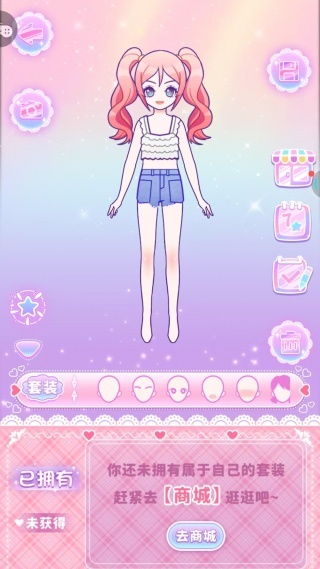 4、点击“去商城”按钮选购服饰,接着在穿搭界面依次从发型、服饰、配饰等维度进行搭配,塑造专属造型,搭配结束后能够保存套装。