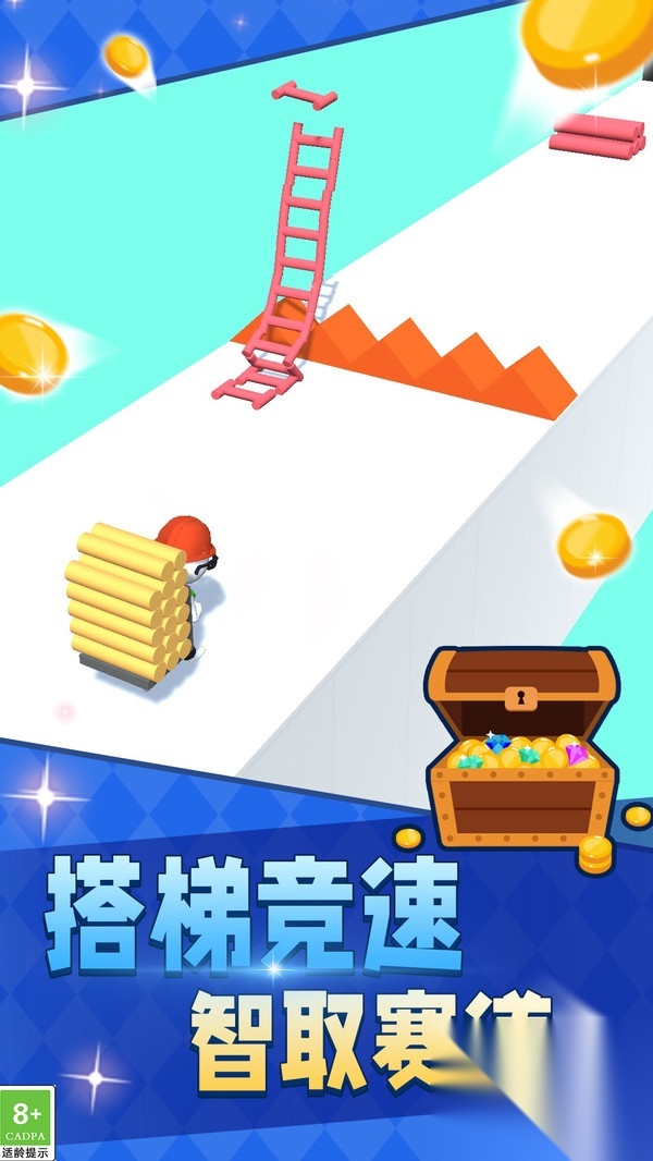 1、收集圆木并自由组合搭建梯子,每种搭建结构都要符合物理原理,稍有疏忽就可能引发坍塌。