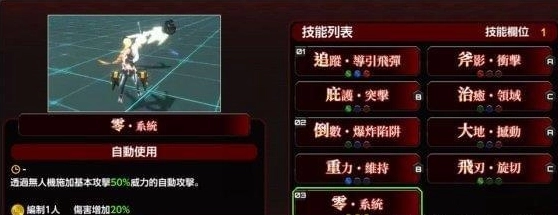出身于拥有尖端技术的美联,艾蜜莉装备的武器,强化外骨骼与无人机自然也不容小觑,搭载最新战斗模组「零系统」,帮助运动白痴的艾蜜莉进行自动攻击。