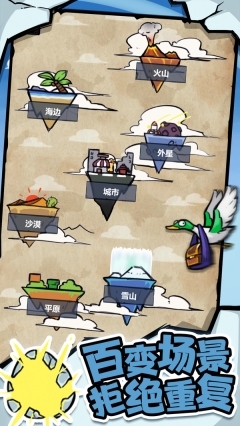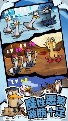 把两只一样的鸭子拖到一块儿,它们就能合二为一,变成等级更高的鸭战士。