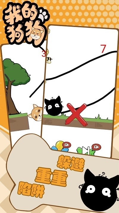 3、创新性的画线操作模式,玩家通过绘制路径指引狗头行动。