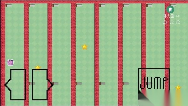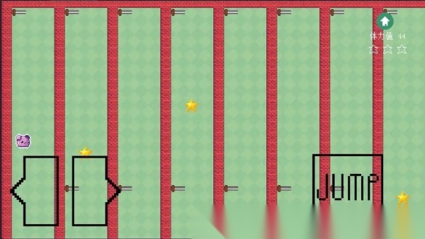 3. 玩法简单轻松,仅需左右移动键与跳跃键,你的目标是收集场景中的三颗星星,之后进入传送门即可通关。