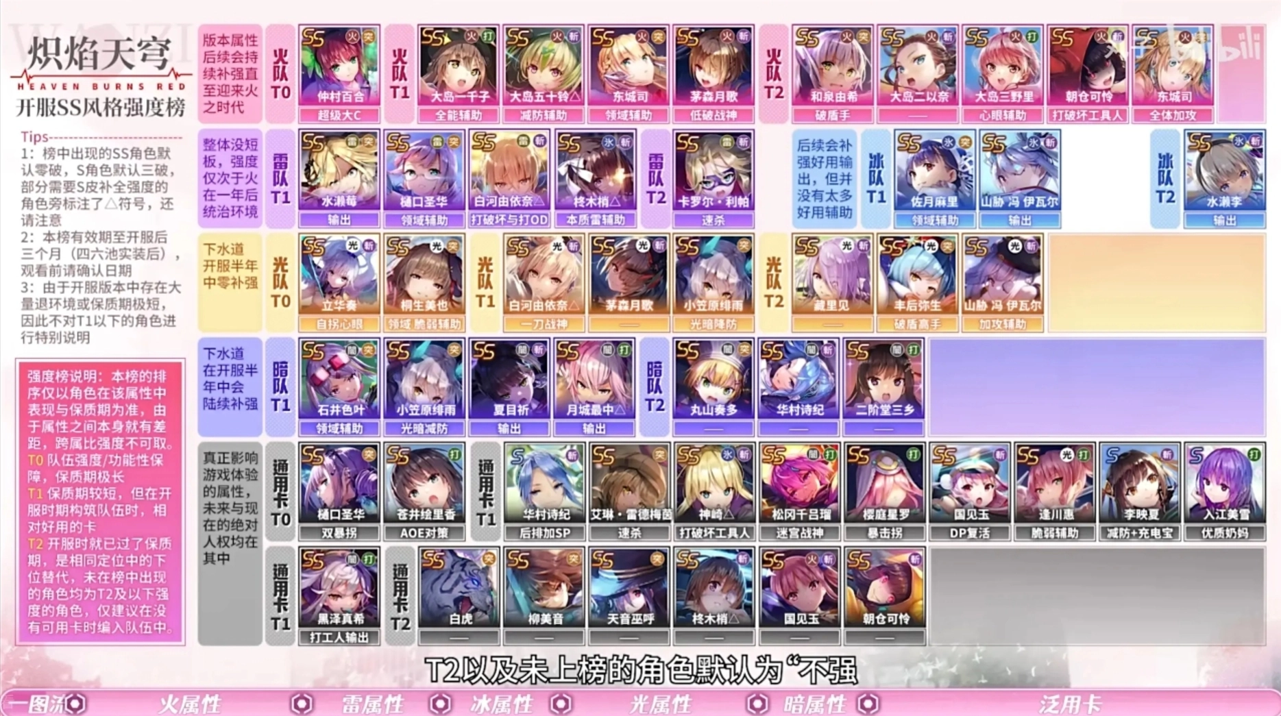 2、由于每期活动boss都会有不同的属性抗性与弱点,所以并不存在哪个属性本身强势或者弱势的情况。除非输出严重不足,否则基本上只要避开属性抗性就可以,属性弱点对上了最好、对不上也能打。