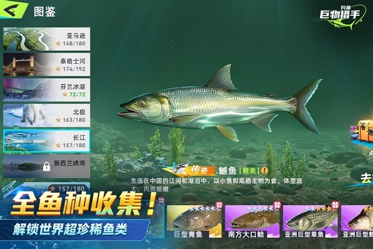 4、还原真实鱼种分布,稀有巨物藏于特定水域,收集挑战感拉满。