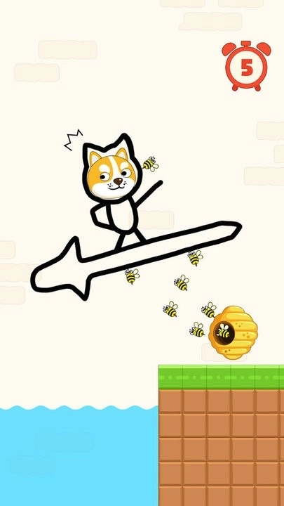 1、玩家需要通过手指绘制防线,阻挡蜜蜂的攻击,保护小狗的安全。