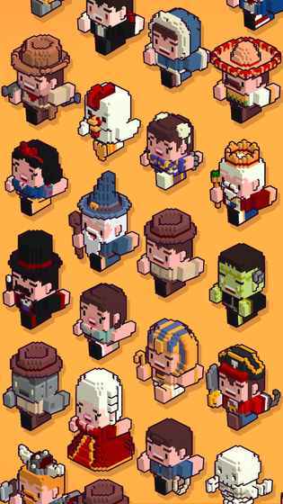 5、收集40多个像素风格角色:忍者、魔法师、骷髅、鸡、冒险袭击者、古墓探险家等丰富角色。