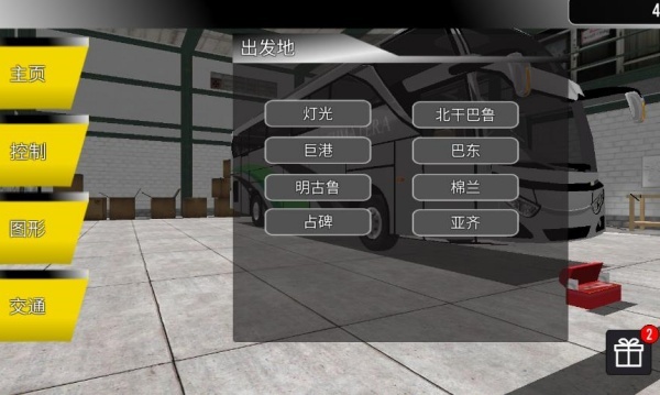 2、选择一个出发地,就可以驾驶巴士进行载客了。