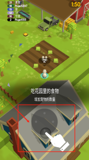 2、按手势提示点花园里的食物,喂宠物增加数量,看左上角排名变化。