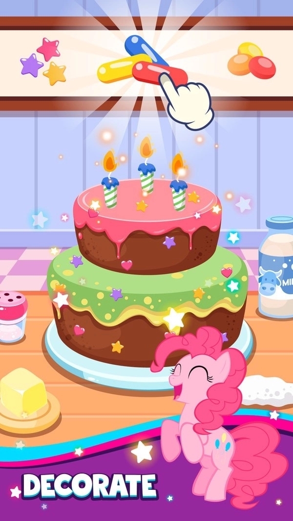 《小马宝莉的蛋糕店》是由经典动画《彩虹小马》改编的游戏,欢迎来到奇妙的小马谷!太令人兴奋了——各位小马粉丝们,准备好迎接惊喜吧!小马们在波尼维尔新开了一家面包店哦!你知道吗?小马们可是随时都热衷于烹饪呢,做蛋糕更是它们最爱的消遣。不过就算是热爱烘焙的它们,也难免会忙不过来,所以需要你来帮忙,让客人们能快速品尝到既美味又神奇的食物!快来协助MLP的朋友们,展现你的厨艺天赋吧!和小马一起制作诱人的蛋糕招待伙伴,这里有丰富的色彩与口味可供挑选,尽情创造专属于你的独特蛋糕吧!