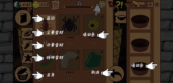 2、各类食物所需的食材不尽相同,你得设法收集足够多样的食材,方能满足恶魔的口腹之欲。