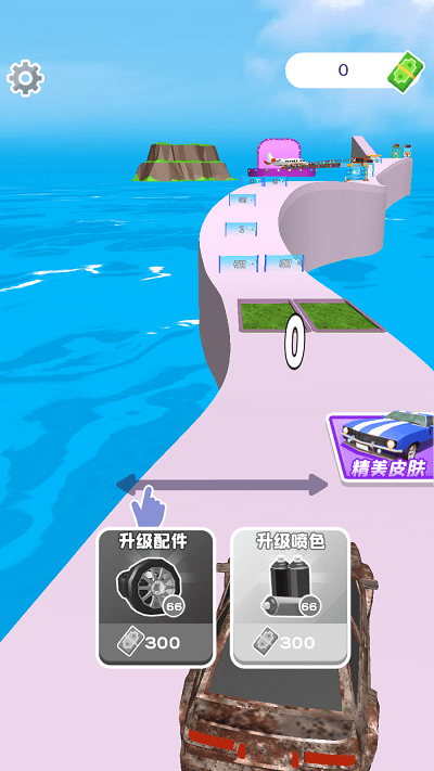 1. 借助虚拟方向盘以及油门、刹车来操控车辆,通过精准的操作躲避赛道上的障碍物,同时收集四处散落的改装零件和金币奖励。