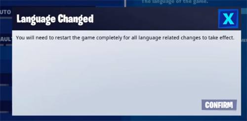 5、最后点击确认更换,重新进入游戏后,就能获取堡垒之夜手机客户端的中文版本了。