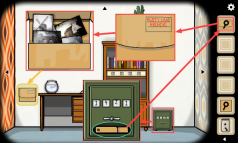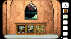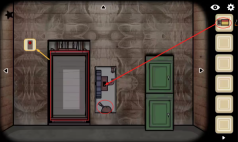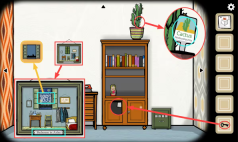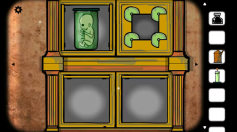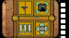 1、点击柜子,操作右上方柜子的机关,让四个轮盘的缺口对准正方形的四个角,打开后得到「墨水」。接着点击下方的柜子,调整轮盘让最右侧的轮盘可以转动,点击两次打开柜子,获取「图画」的部分。