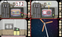 2、通风:按照打字机上显示的数字“392”调整频道后,电视画面中呈现出锈湖以及两个方框(此时乌鸦先生正在锈湖的磨坊内),把白方块与黑方块放入电视里,即可解锁“通风”成就。