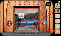 2、打开左上方的柜子,调整位置后打开图1左下方的柜子,获取第二件「图画」;接着点击左下方的柜子,调整图案打开柜子,得到「钥匙」。