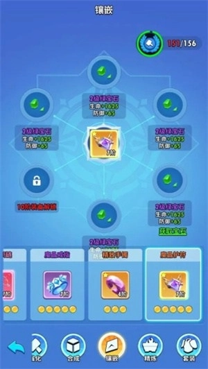 镶嵌宝石是提升角色额外属性的途径之一,每个装备最多镶嵌六个宝石,三个相同的宝石可以进行升级,宝石的合成需要在装备镶嵌界面合成,宝石的阶级越高增加的角色基础属性就越多。