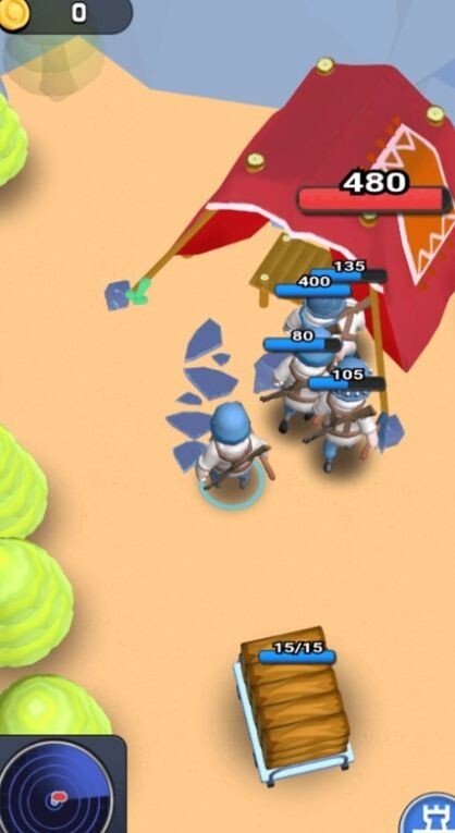 3、玩法自由度较高,能招募更多小兵组成专属队伍,一起进行砍木作业。