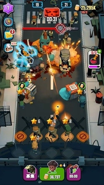 3、游戏提供丰富的补给系统,击杀僵尸后可获得资源,用于军队升级。