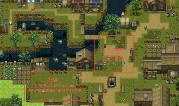 6、出营地,往左下走,进入新手村。进入新手村母鸡群区域,刷取母鸡掉落的护手,增加伤害,母鸡掉落鸡羽衣制作图纸,可稍后再做。鸡群中挂机几率遭遇鸡王boss,如果能打过,可以现在刷,如果打不过,刷出母鸡护手后返回营地刷取人形怪装备,根据自己难度抉择。