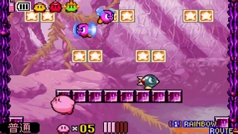3、玩家可以通过吸入敌人来获取他们的能力,增强卡比的战斗技巧。