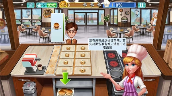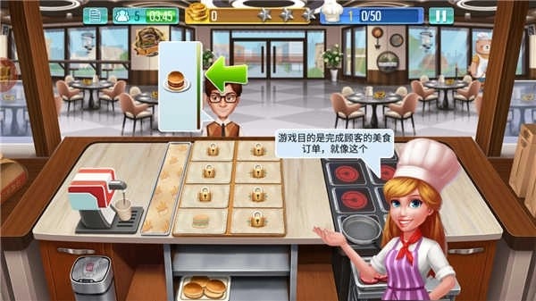 4、有顾客需要汉堡,玩家主要是制作顾客所需的汉堡;