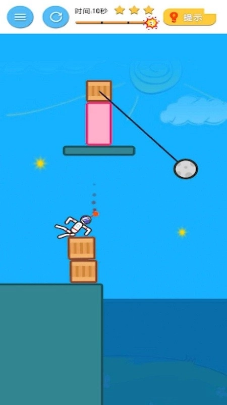 2、进入水中即可完成关卡,但需要巧妙利用环境元素和机关装置,将炸弹安全引导至水域。
