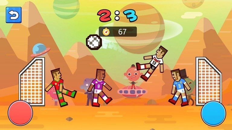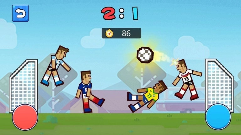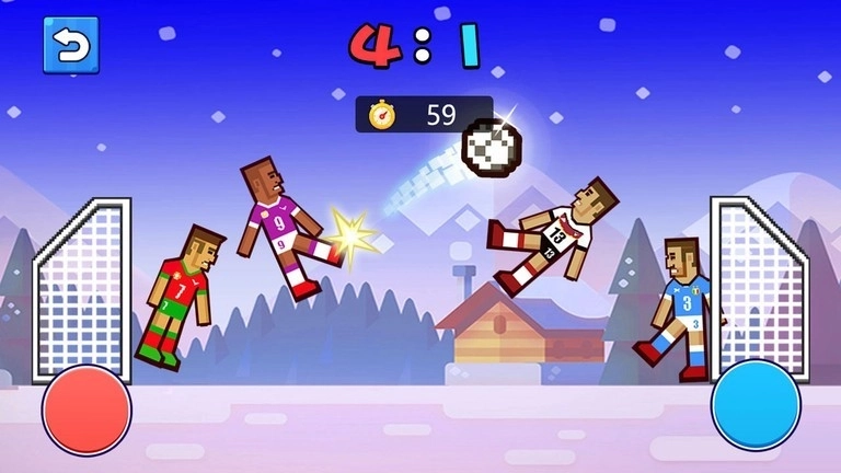 1、玩家可以通过简单的滑动操作控制角色,将球射入对方球门以得分。
