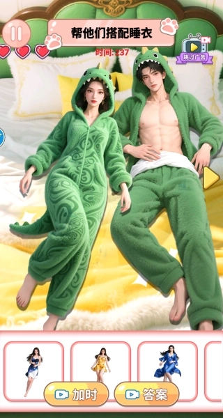 1、进入游戏后,你会看到一对身着红色睡衣的情侣,点击即可开始游戏。