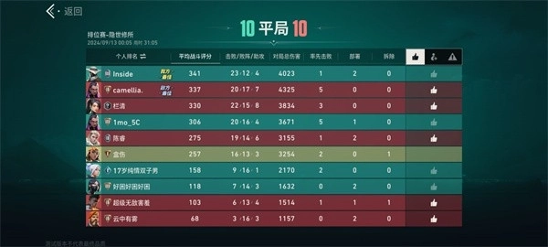 7、完成对局后会生成【对局统计】,每一局的表现都有详细的数据记录,可在对局结束后进行查看;