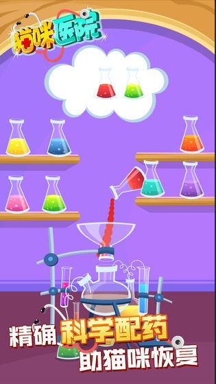 玩家在游戏里化身猫医生,为生病的猫咪们诊疗,让它们恢复健康状态;每只小猫的病症都各有不同。