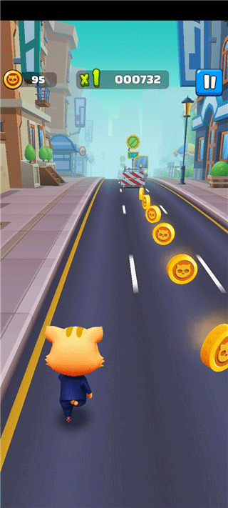 3、控制可爱的小猫咪角色展开精彩的奔跑之旅。