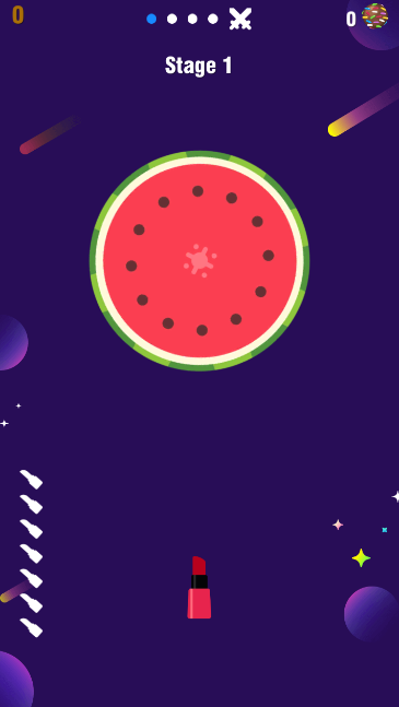 口红挑战是一款投掷口红射击类休闲游戏,其玩法简单又有趣。玩家需要将口红投掷到靶子上,击碎靶子即可完成关卡挑战。投掷时要注意避开已插在靶子上的口红,每关共有3次投掷机会。收集更多游戏道具,能帮助你更快速地通关!