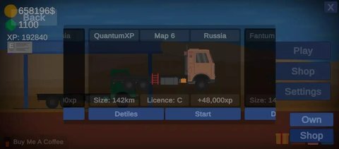 1、金币系统用于购买和升级卡车。