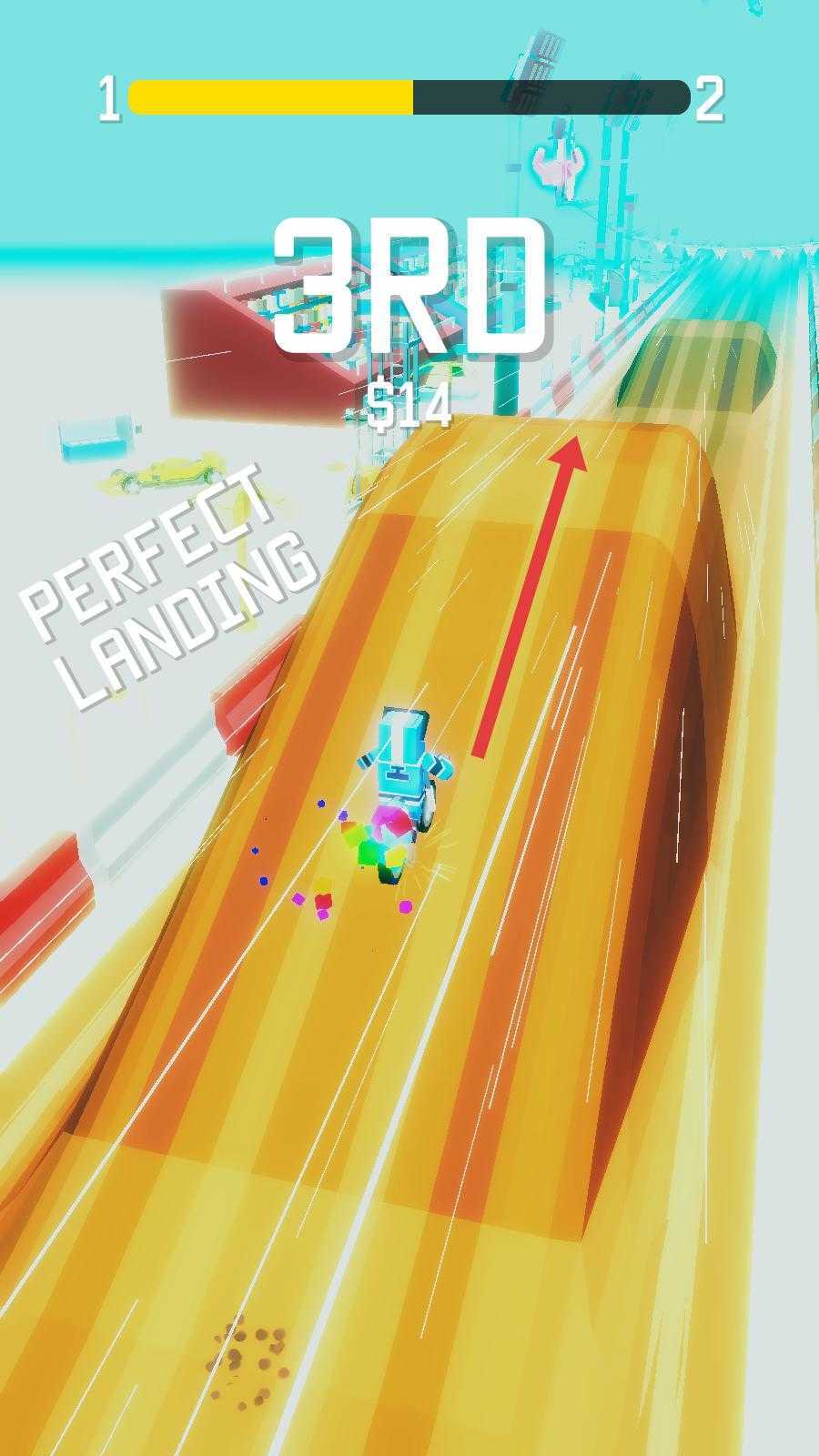 3、当你成功完成特技动作与赛道行驶后,界面会呈现出当前排名等相关信息,接下来你可以继续在赛道上疾驰,努力去争取更出色的名次。