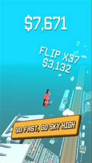 2、当赛道上出现坡道这类地形时,按住屏幕来操控摩托翻转,以此完成特技动作,与此同时还要注意维持摩托的平衡状态和行驶速度。