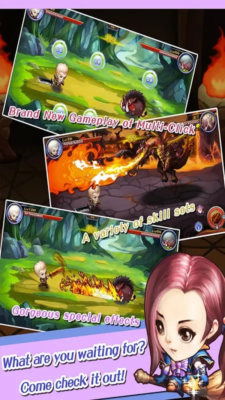 1、丰富多样的点击手势搭配多变的技能组合,使战斗过程愈发华丽炫酷,有效激发玩家的战斗激情。