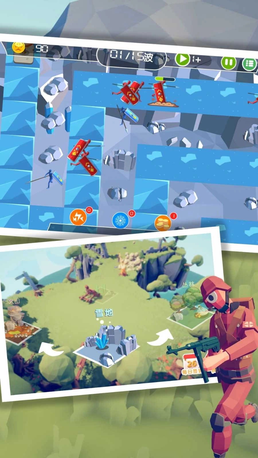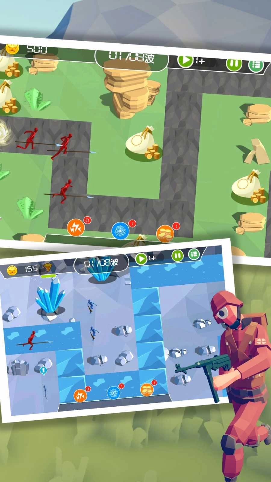 游戏里有丰富多样的兵种供玩家自由搭配组合,还有各类主题地图等着玩家去挑战,玩家需要合理部署士兵来赢得这场塔防战争的胜利。