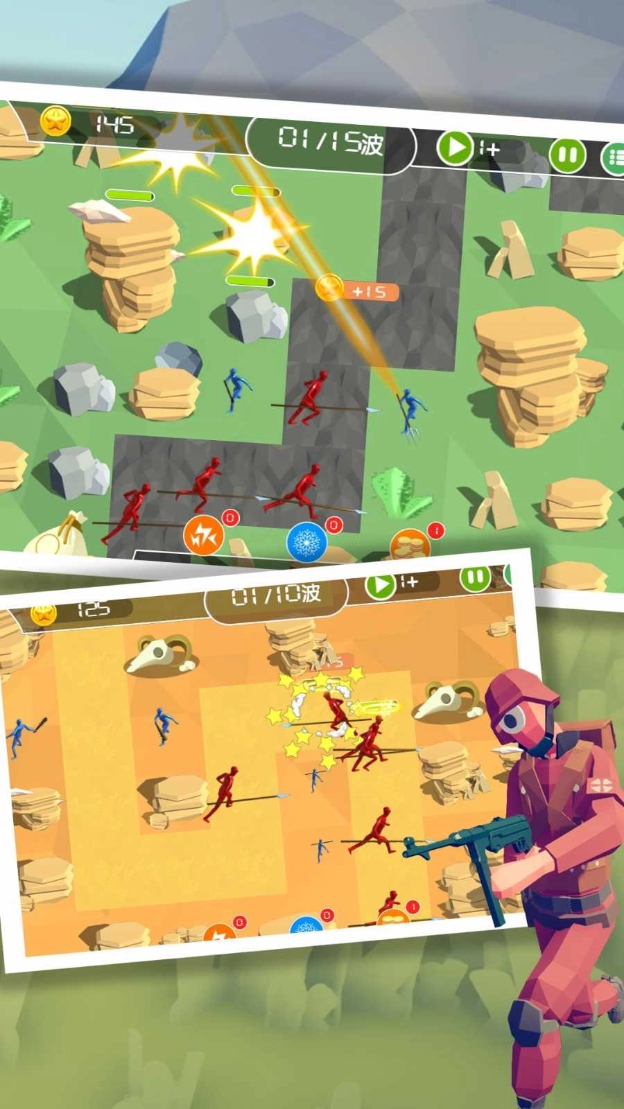 游戏的玩法简单又轻松,只要具备出色的战略部署思维,就能顺利通过各类战争塔防关卡。