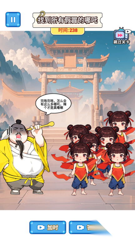 2、按照哪吒相关神话故事的脉络来设计关卡,玩家会随着剧情的推进,在不同的情节里遇到辨别真假哪吒的挑战。