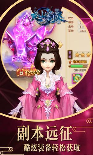 天山剑灵是一款经典的传奇武侠热血PK手游。逼真的场景与真实的打斗音效,让你体验身临其境的战斗快感。玩家将化身动荡时代的剑客,于乱世之中演绎火爆的恩怨情仇。经典回合制玩法下,打怪升级可获上古神器,还能参与各类战斗活动、联盟对决,与兄弟并肩杀敌争霸,感受青春热血的江湖豪情。