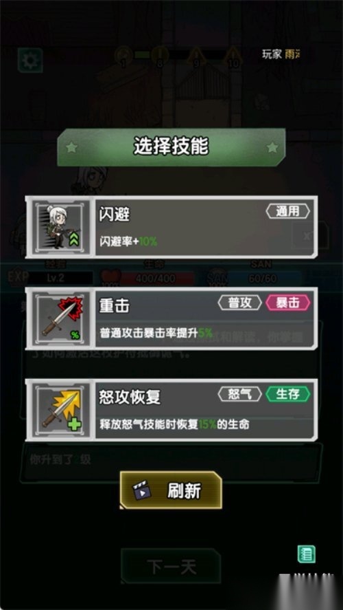 2. 当你升级时可以获得一次选择技能的机会。