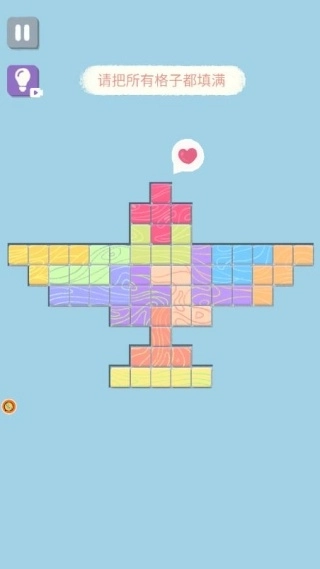 1、在方块拼图关卡里,把散落的碎片拖动到对应位置,调整角度让它们拼接成完整的图案。